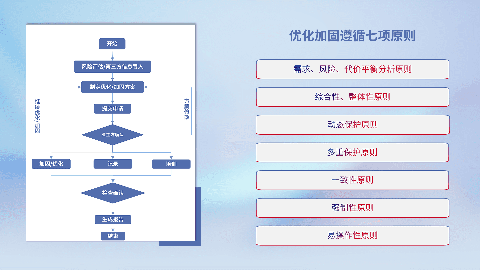 最大程度利用现有资产,,,对评估发现的问题进行封堵与整改,,,,防止漏洞被利用,,提升整体网络安全性,,,,为客户带来高标准的优化加固服务。。